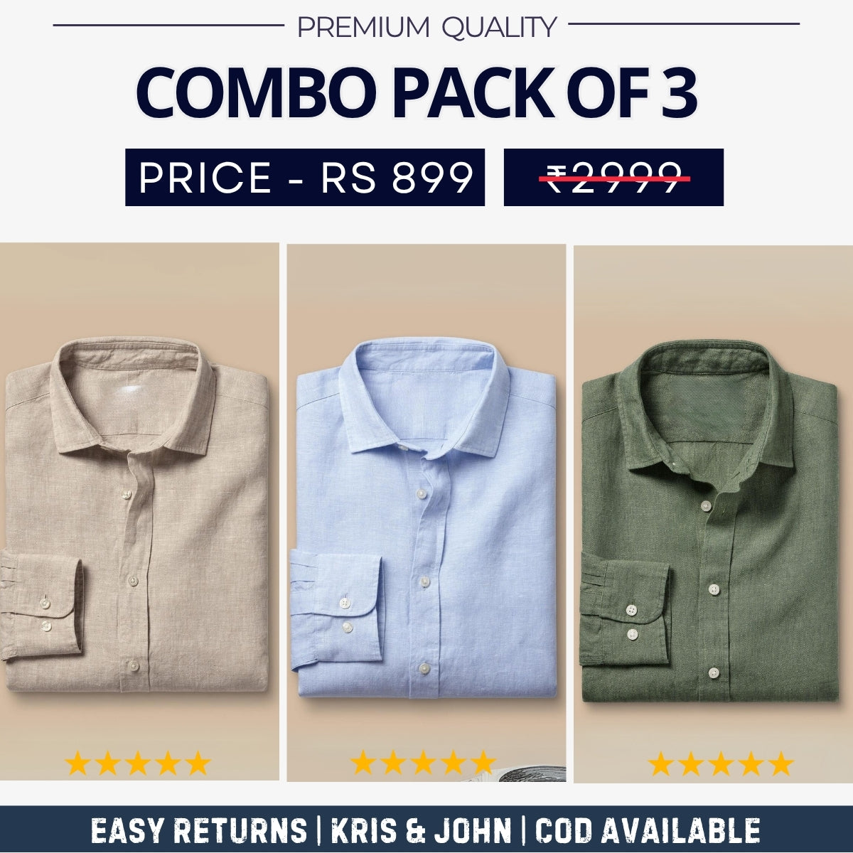 Combo Pack of 3 Men’s Formal Shirts – Stylish & Versatile Collection (Half & Full Sleeves, With/Without Pockets) (FS-51)
