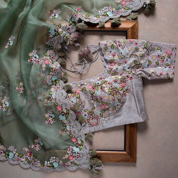 Composition: Sari and blouse length- 6.5 metres. Includes coordinated unstitched blouse piece