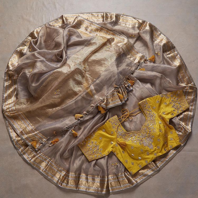 Composition: Sari and blouse length- 6.5 metres. Includes coordinated unstitched blouse piece