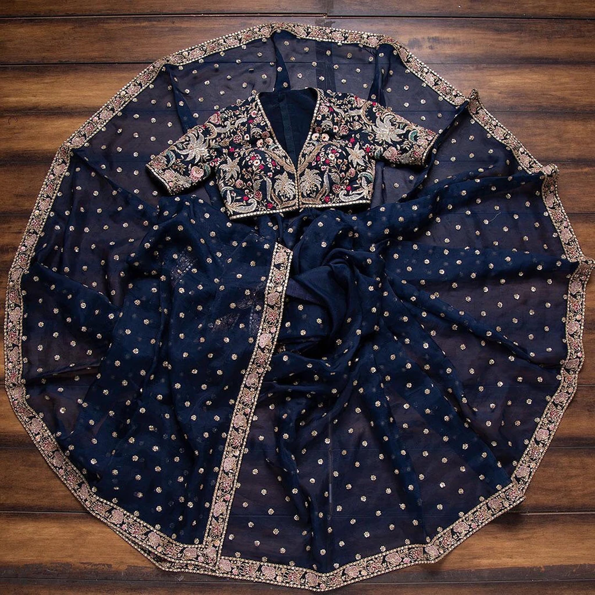 Composition: Sari and blouse length- 6.5 metres. Includes coordinated unstitched blouse piece