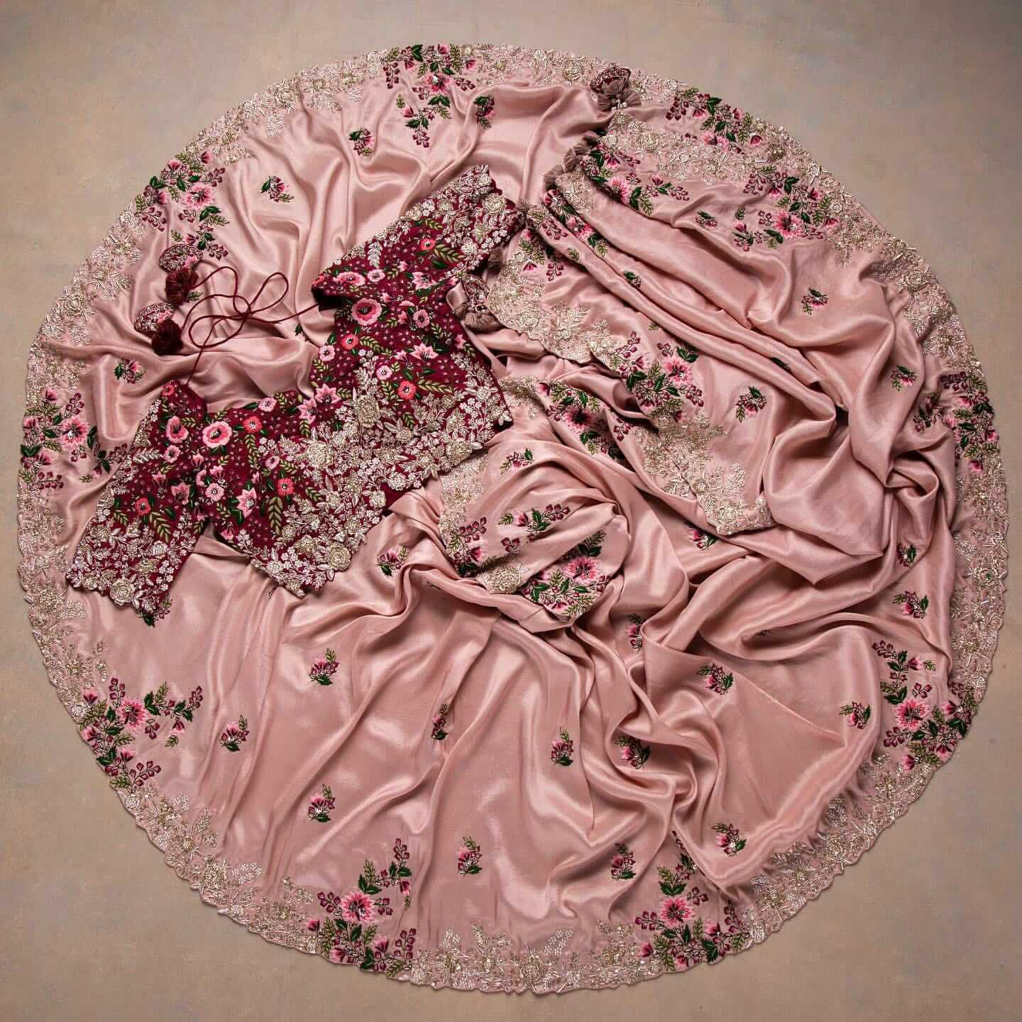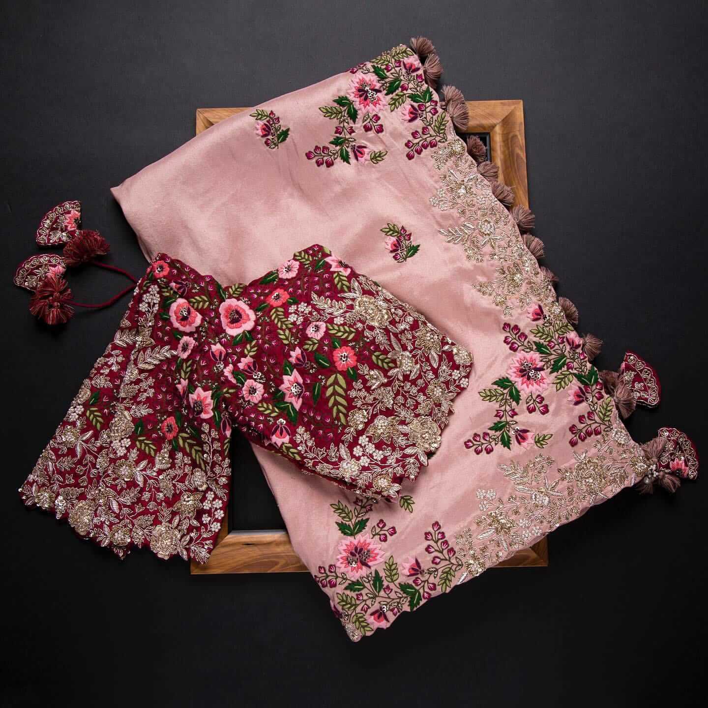 Composition: Sari and blouse length- 6.5 metres. Includes coordinated unstitched blouse piece