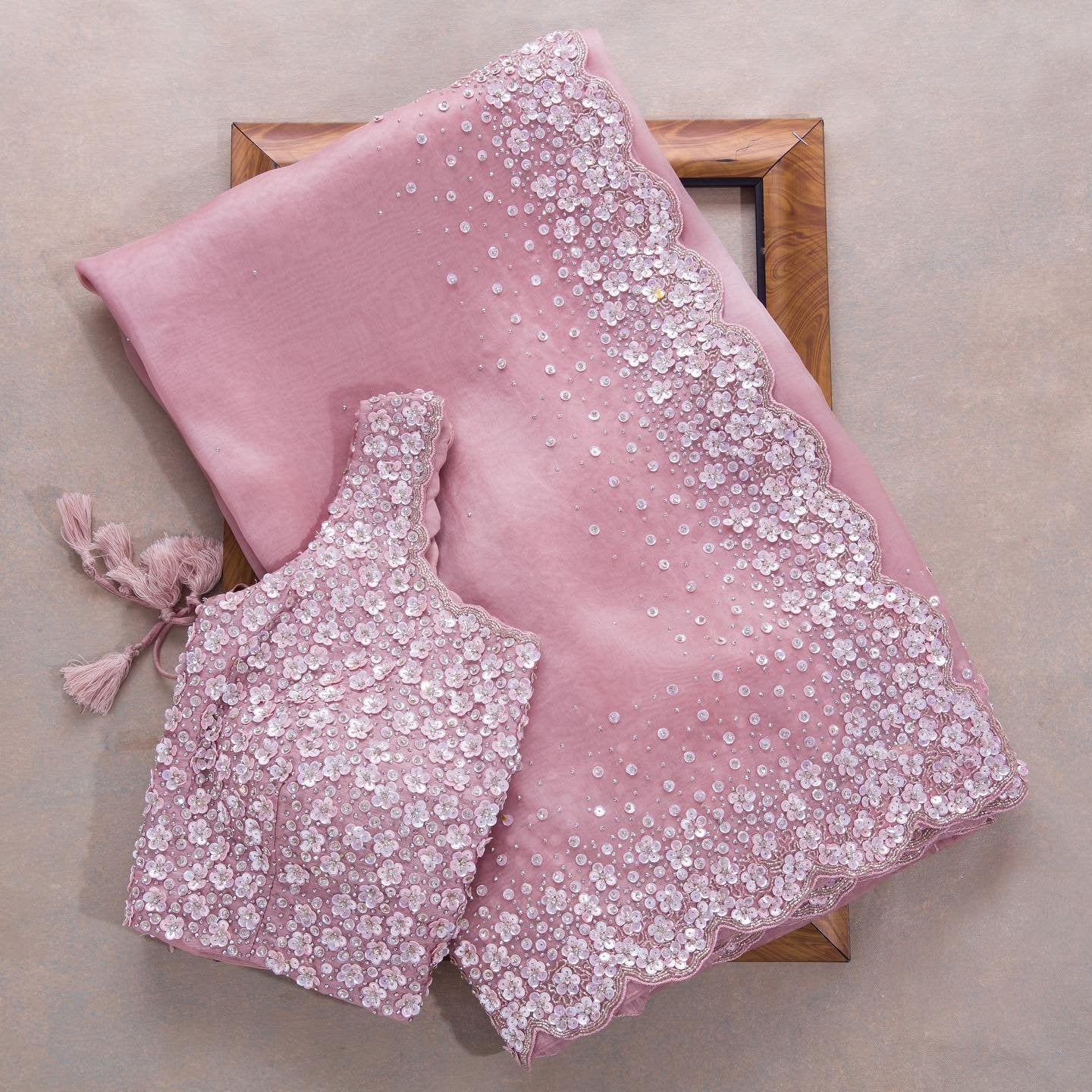 Composition: Sari and blouse length- 6.5 metres. Includes coordinated unstitched blouse piece