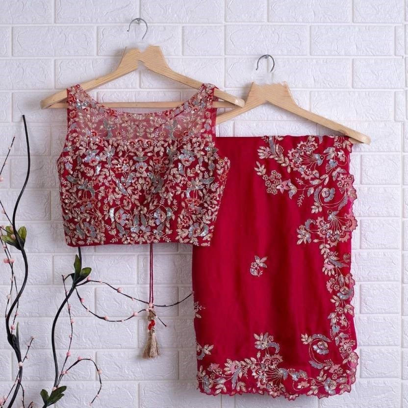 Composition: Sari and blouse length- 6.5 metres. Includes coordinated unstitched blouse piece