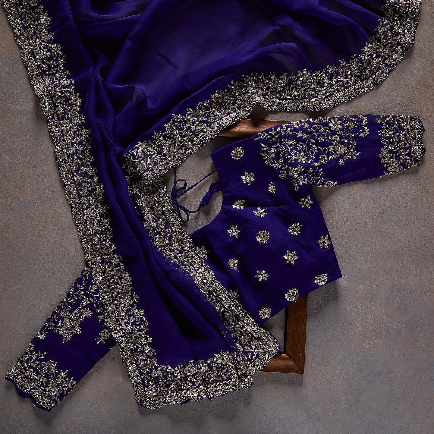 Composition: Sari and blouse length- 6.5 metres. Includes coordinated unstitched blouse piece