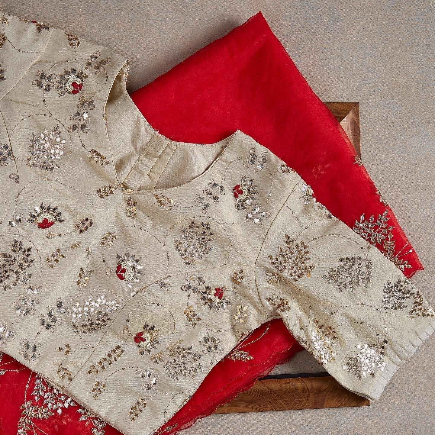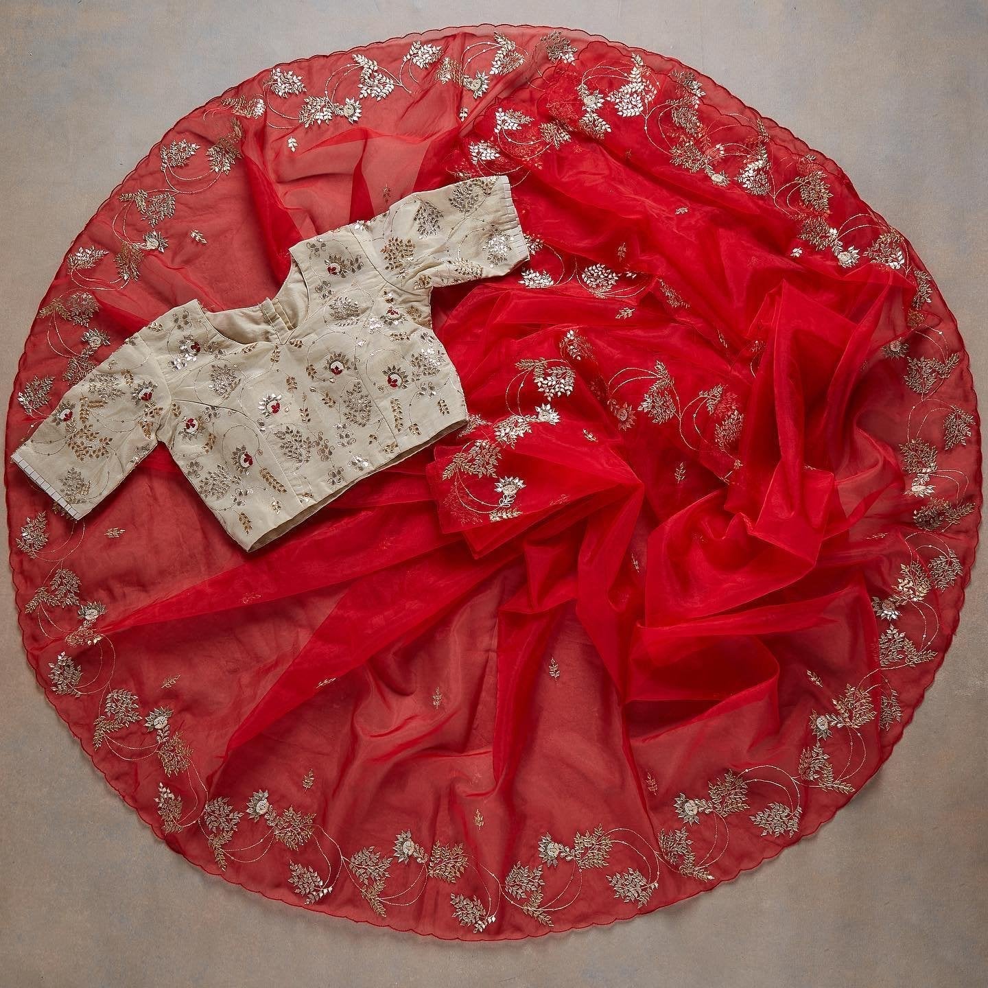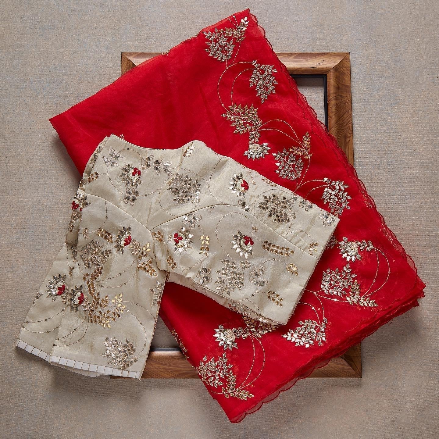 Composition: Sari and blouse length- 6.5 metres. Includes coordinated unstitched blouse piece