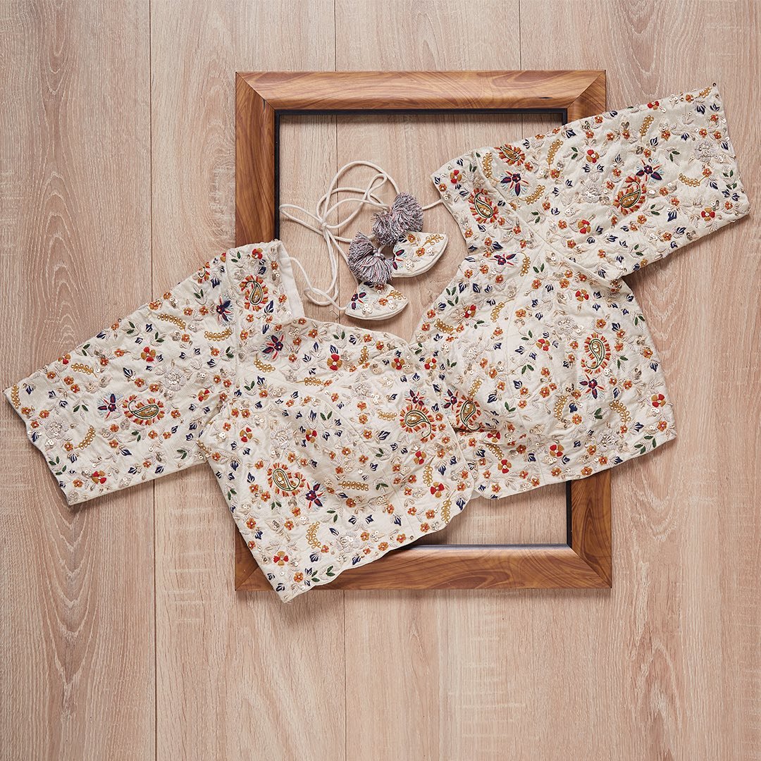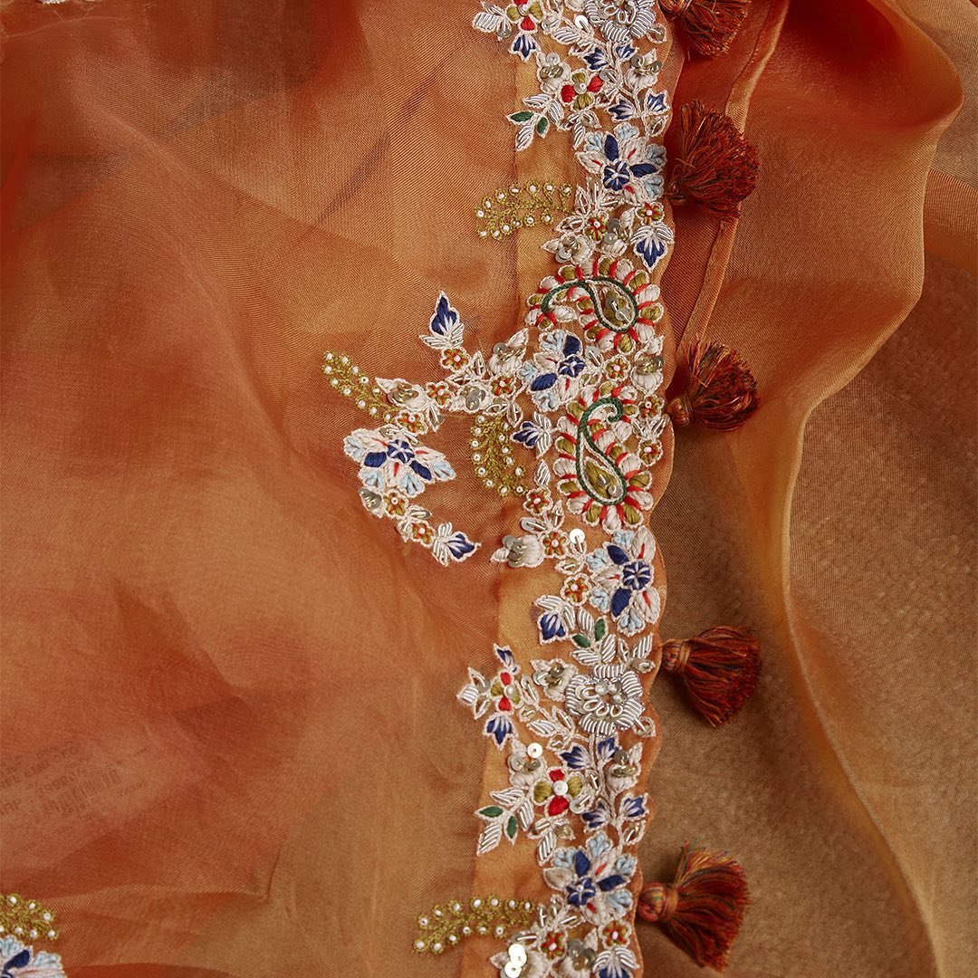 Composition: Sari and blouse length- 6.5 metres. Includes coordinated unstitched blouse piece