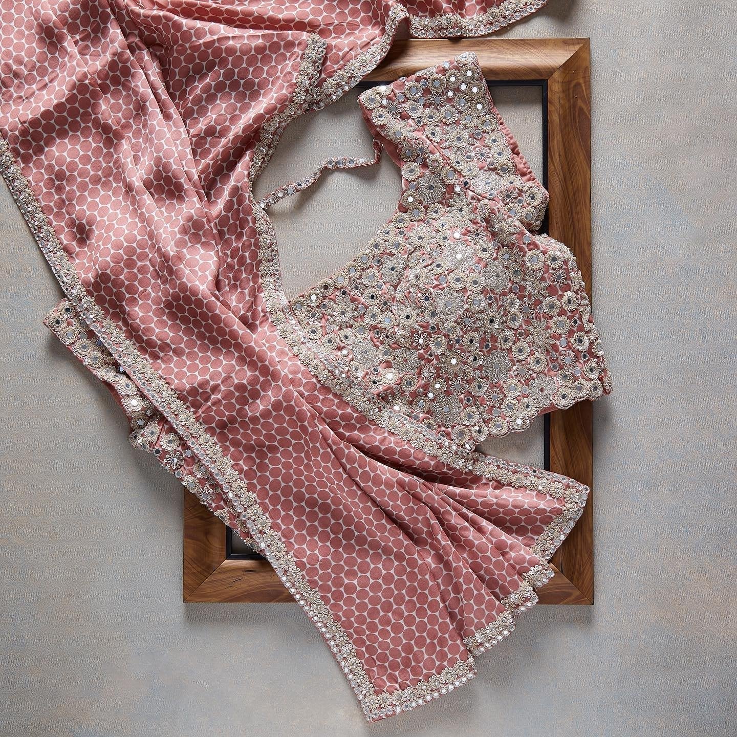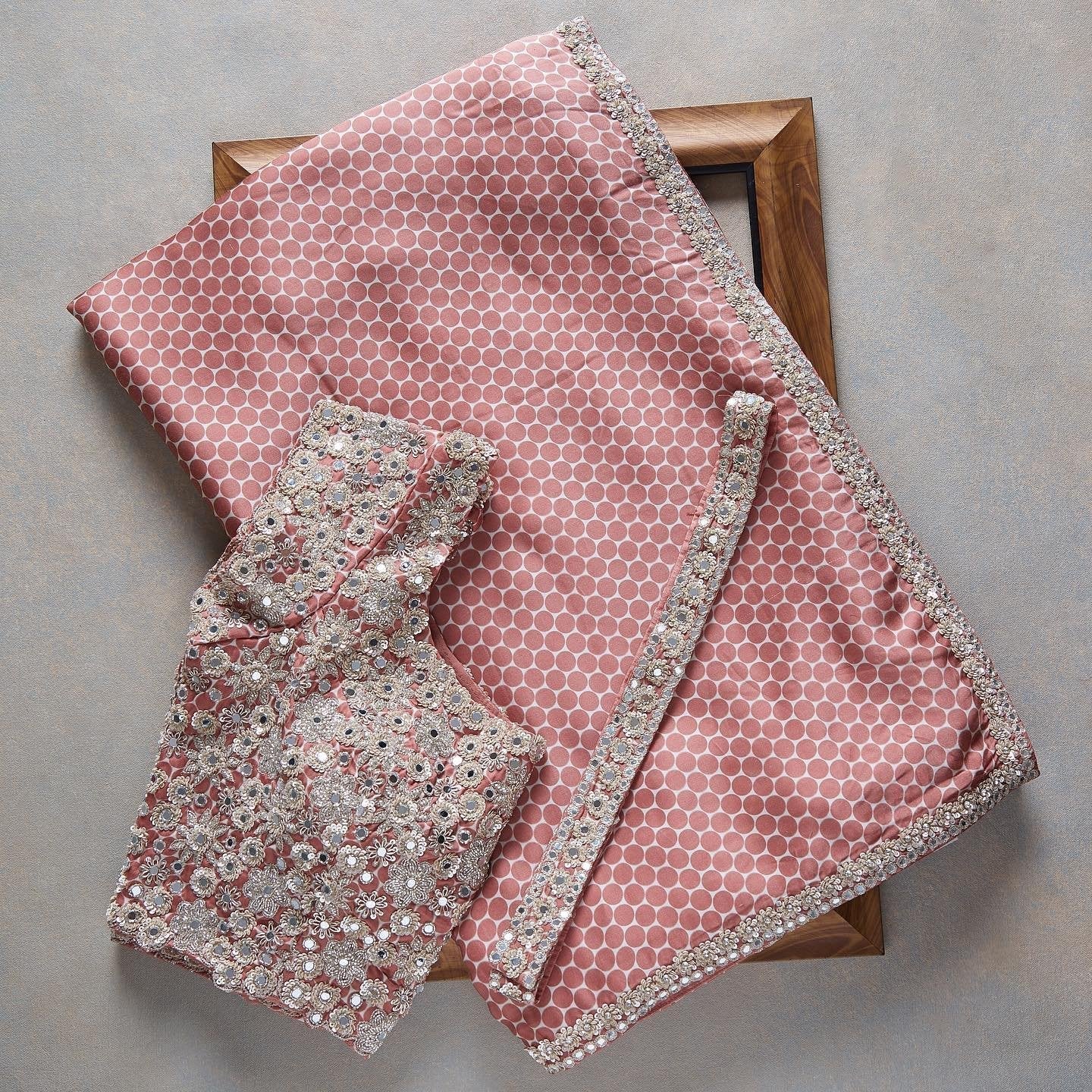 Composition: Sari and blouse length- 6.5 metres. Includes coordinated unstitched blouse piece