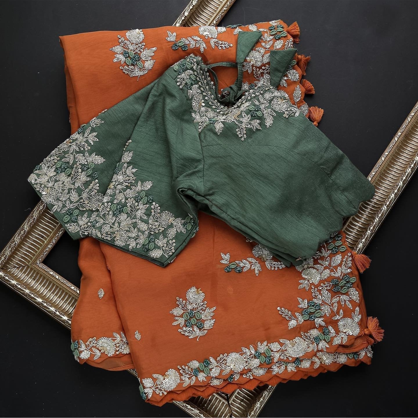 Composition: Sari and blouse length- 6.5 metres. Includes coordinated unstitched blouse piece