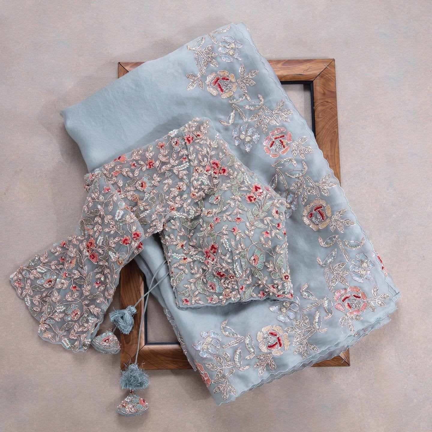 Composition: Sari and blouse length- 6.5 metres. Includes coordinated unstitched blouse piece