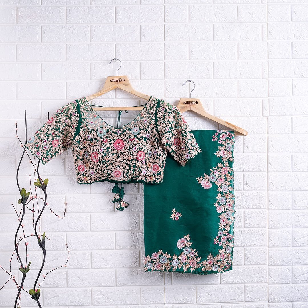 Composition: Sari and blouse length- 6.5 metres. Includes coordinated unstitched blouse piece