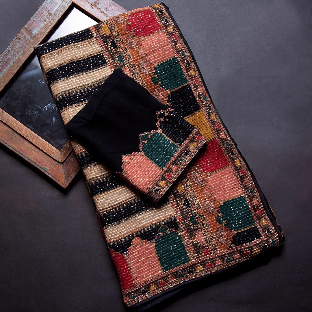Composition: Sari and blouse length- 6.5 metres. Includes coordinated unstitched blouse piece