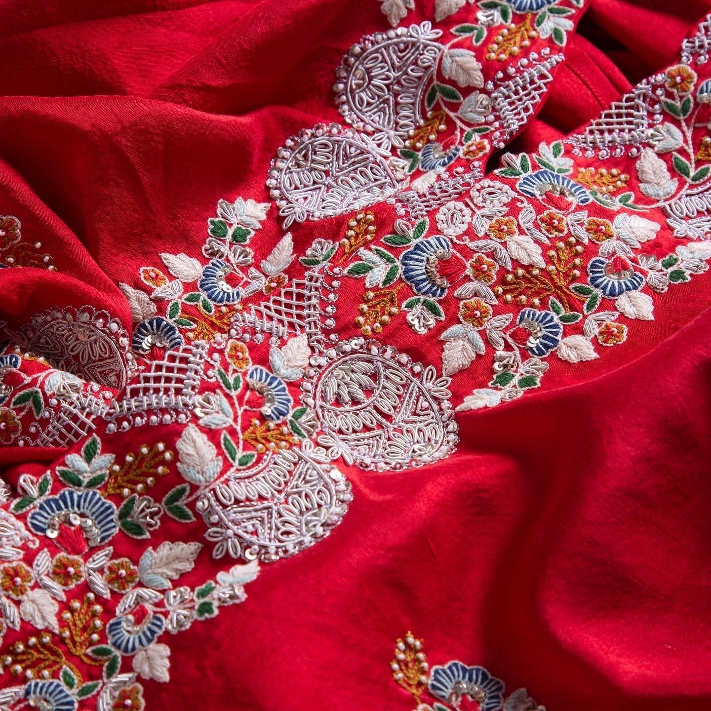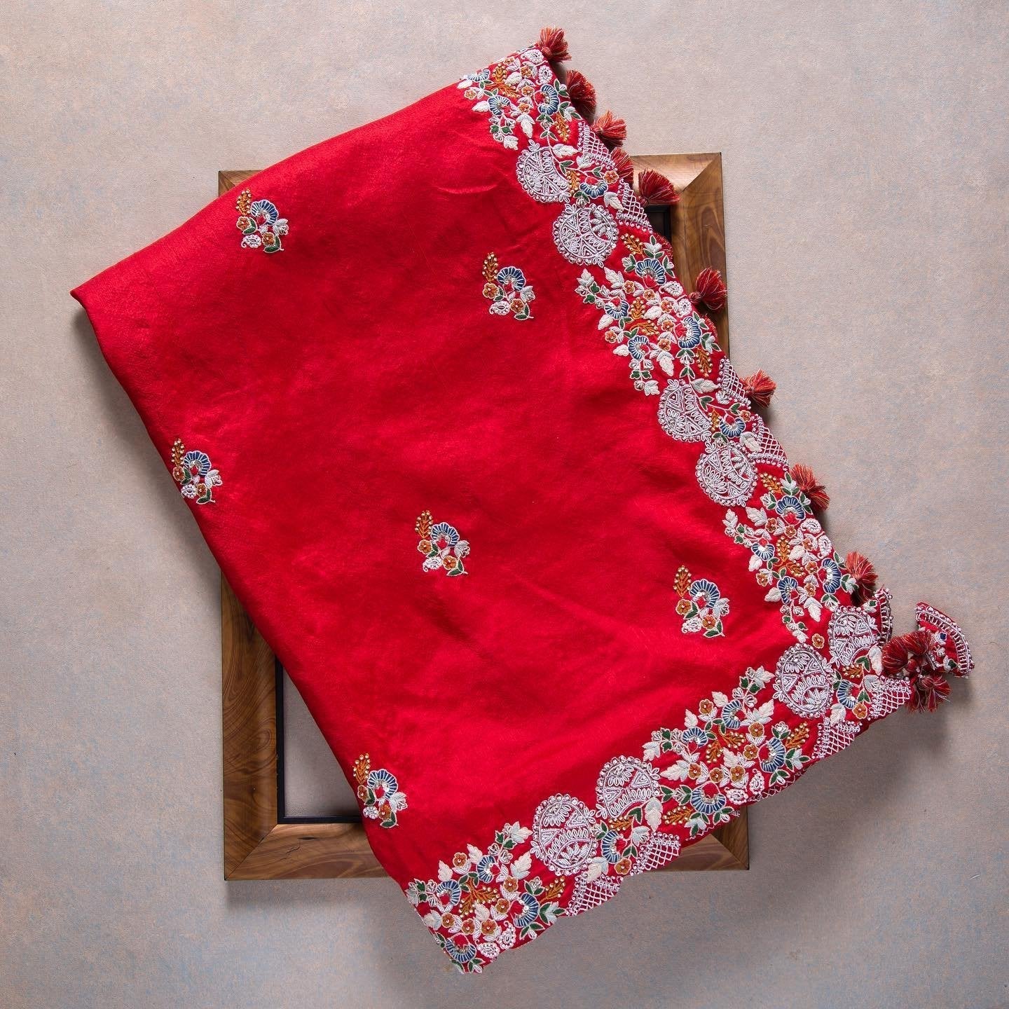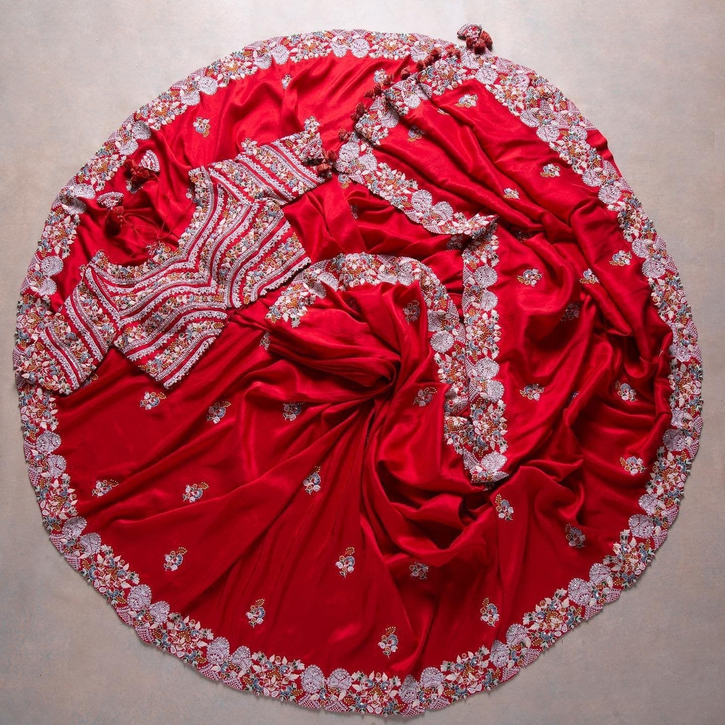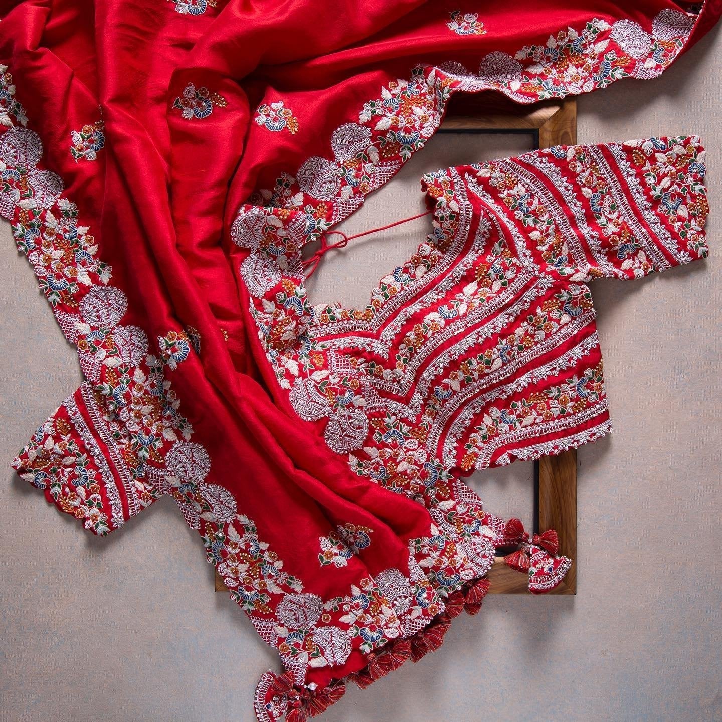 Composition: Sari and blouse length- 6.5 metres. Includes coordinated unstitched blouse piece