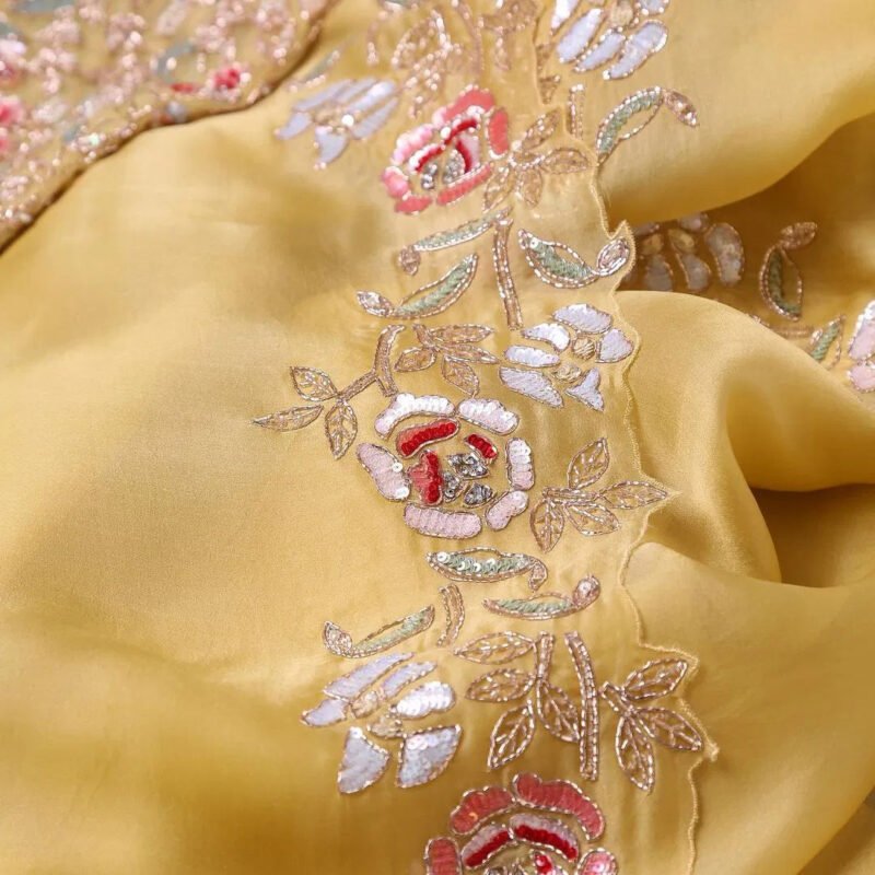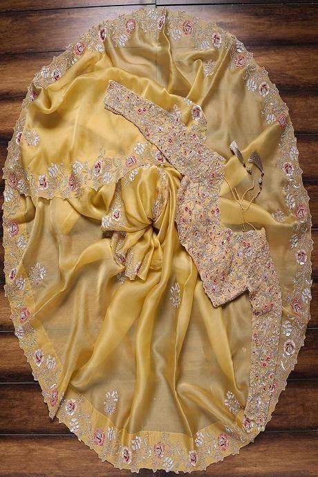 Composition: Sari and blouse length- 6.5 metres. Includes coordinated unstitched blouse piece