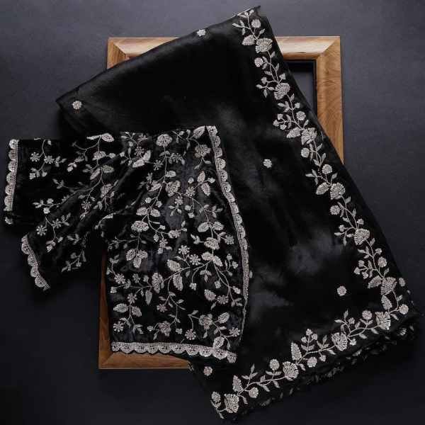 Composition: Sari and blouse length- 6.5 metres. Includes coordinated unstitched blouse piece