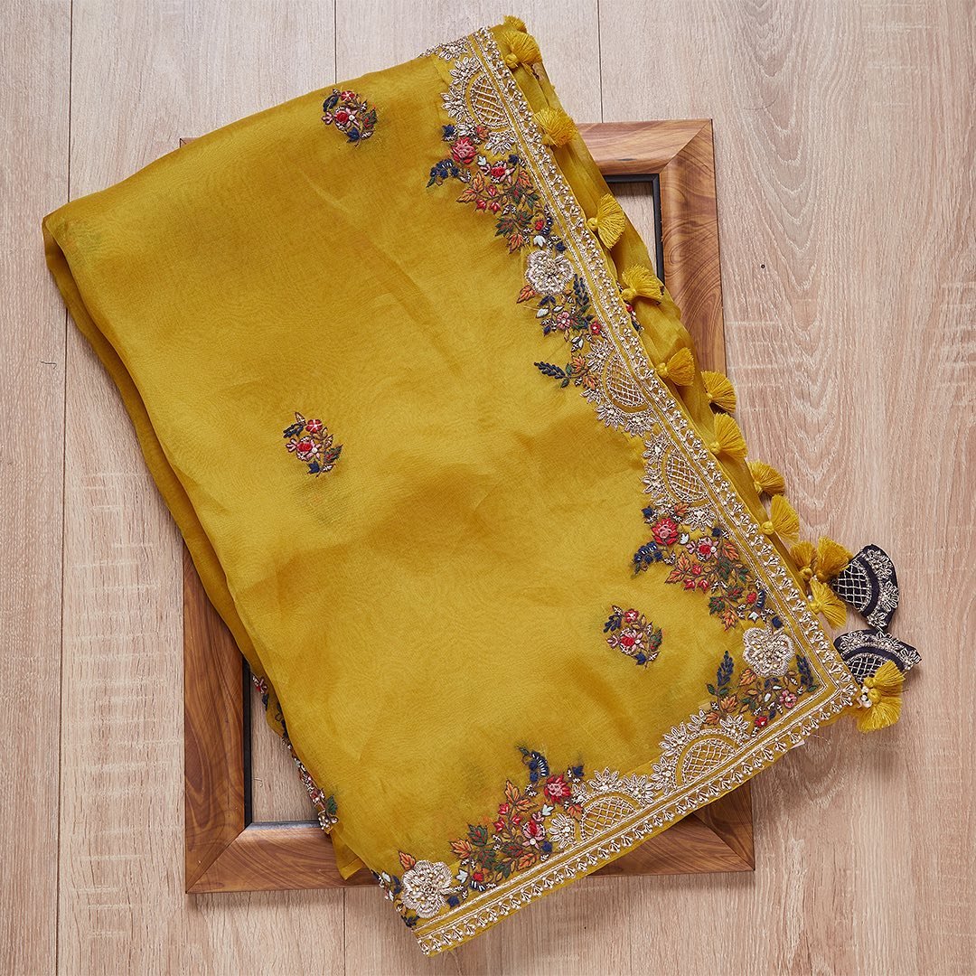 Composition: Sari and blouse length- 6.5 metres. Includes coordinated unstitched blouse piece