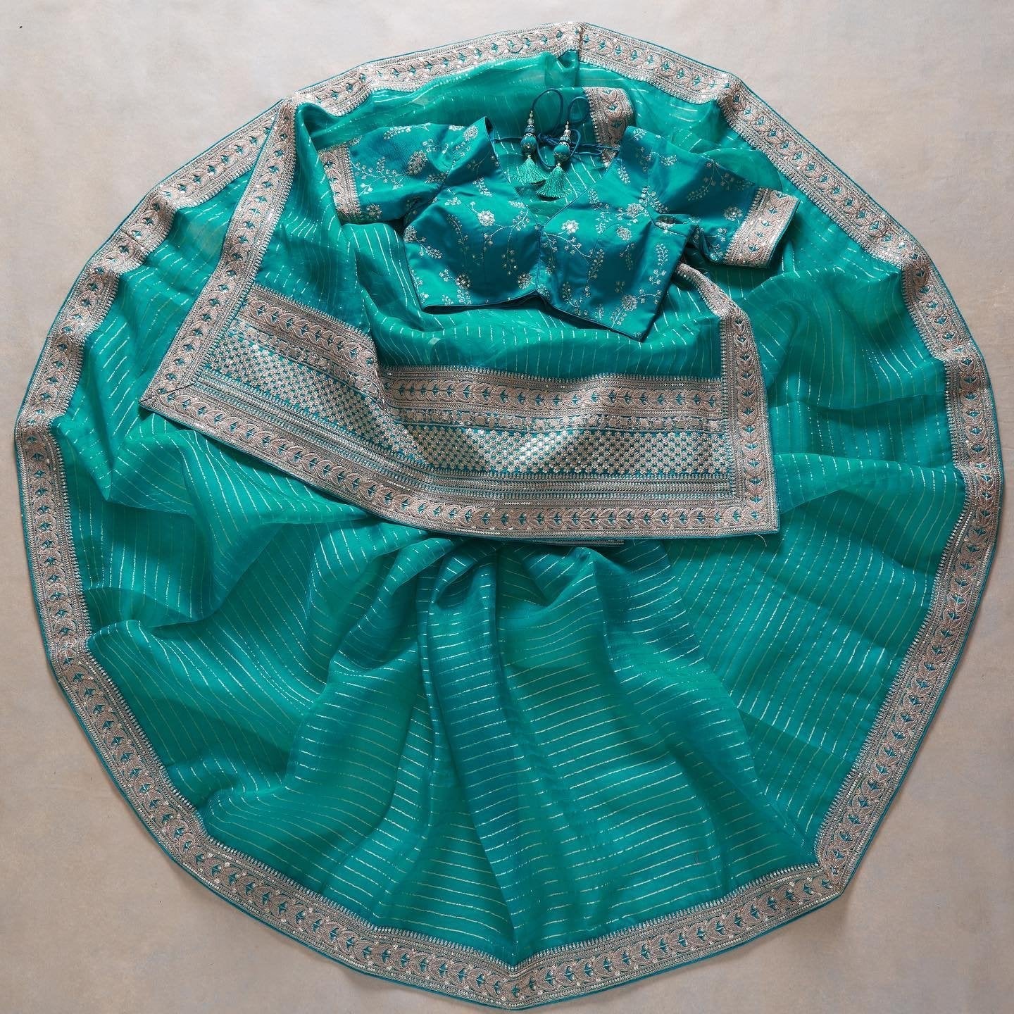 Composition: Sari and blouse length- 6.5 metres. Includes coordinated unstitched blouse piece