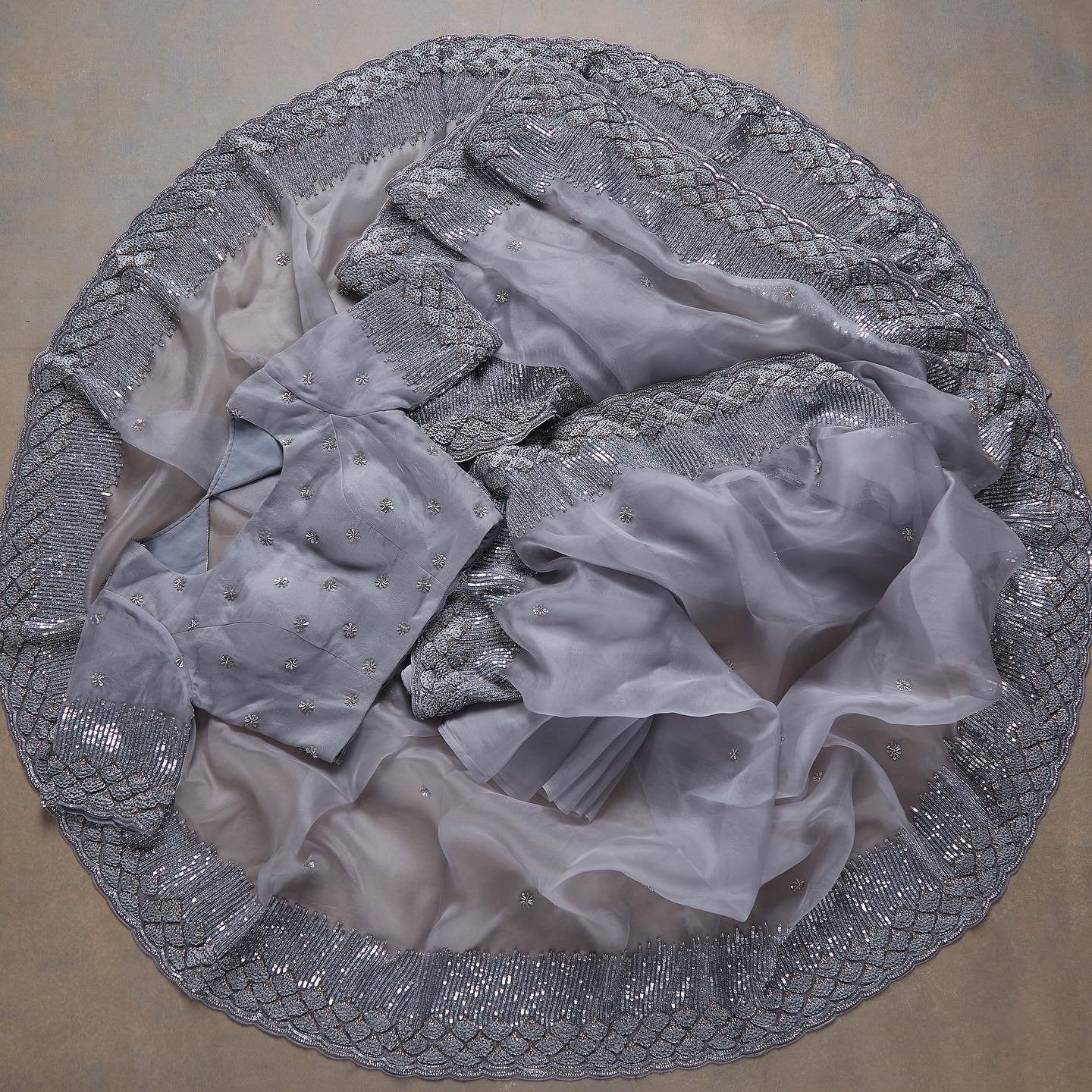 Composition: Sari and blouse length- 6.5 metres. Includes coordinated unstitched blouse piece