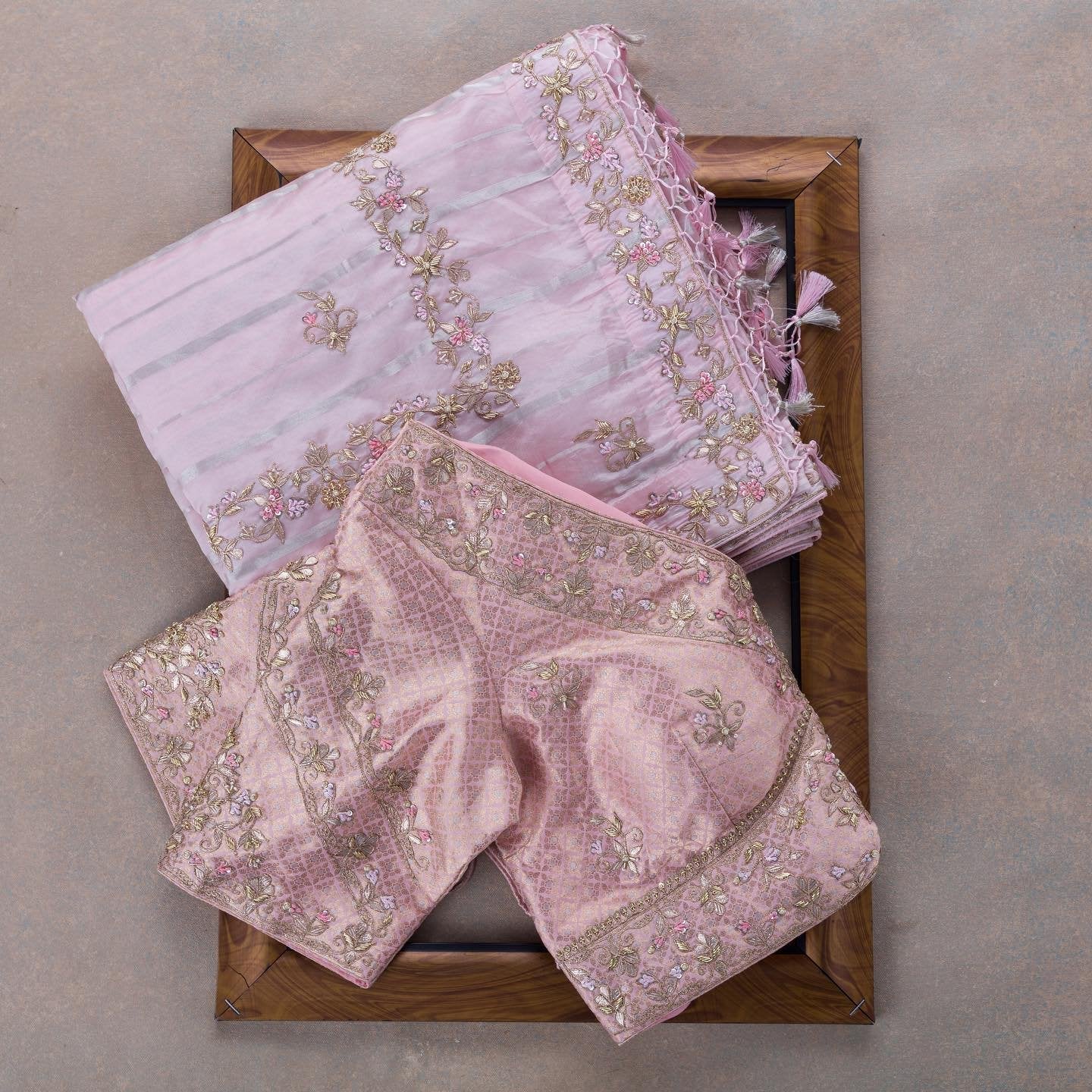 Composition: Sari and blouse length- 6.5 metres. Includes coordinated unstitched blouse piece