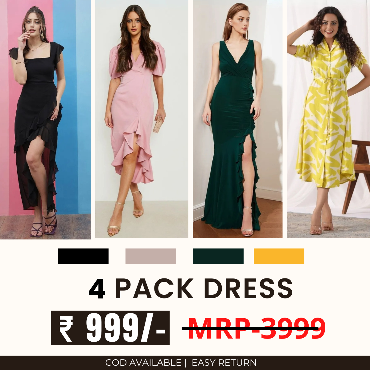 Pack of 4 Women’s Dresses: Chic, Trendy, and Timeless | C-032