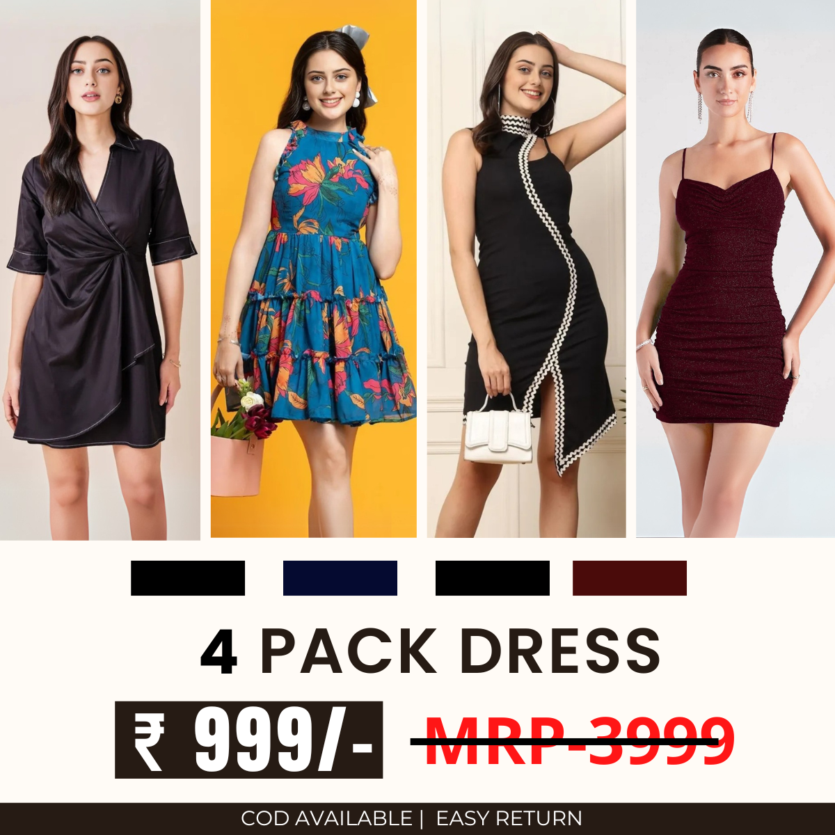 Pack of 4 Women’s Dresses: Chic, Trendy, and Timeless | C-035