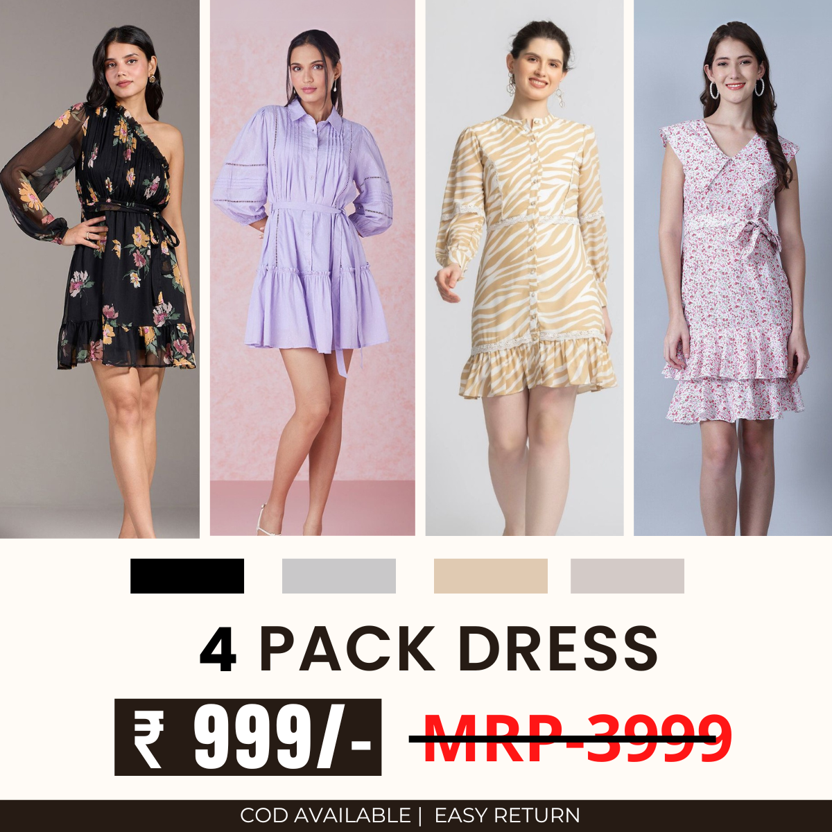 Pack of 4 Women’s Dresses: Chic, Trendy, and Timeless | C-040