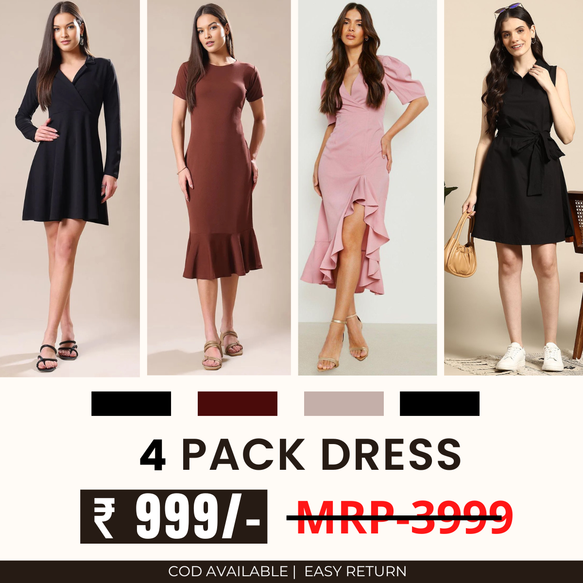 Pack of 4 Women’s Dresses: Chic, Trendy, and Timeless | C-033
