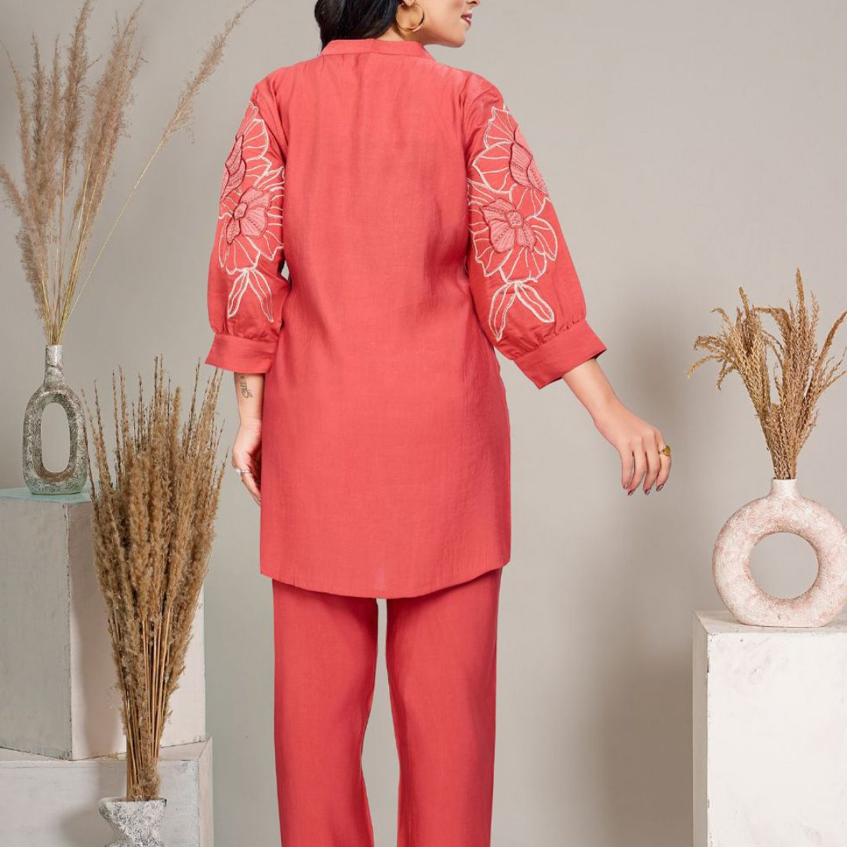 The 4 Co-ord Set Women Combo offers a versatile and stylish wardrobe upgrade for every occasion. This collection includes an elegant ethnic co-ord set, perfect for festive celebrations with its intricate prints and rich fabrics like silk or cotton in vibrant hues such as maroon or emerald green.